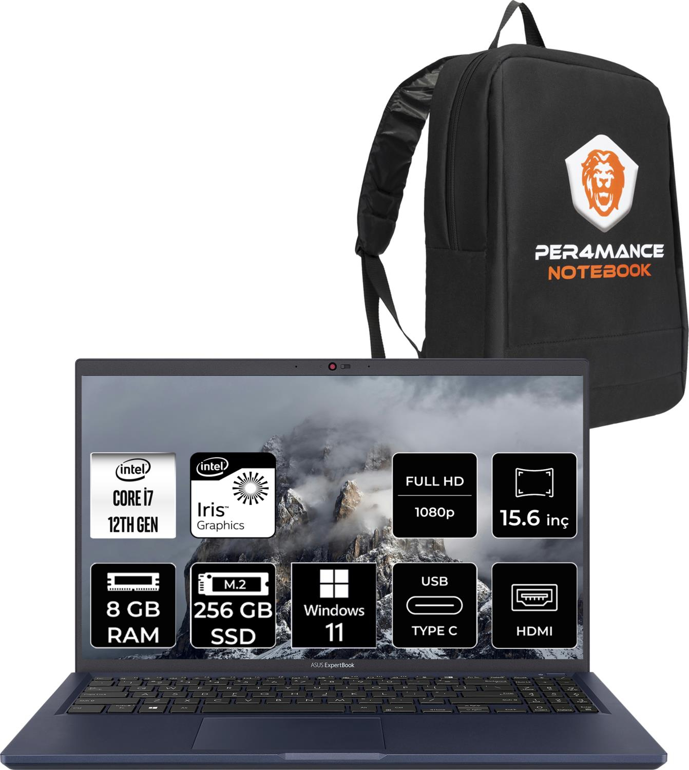Asus Expertbook B1 Intel Core I7 1255U 8gb 256GB SSD 15.6" Fhd W11H Taşınabilir Bilgisayar & Per4 Çanta B1502CBAP326