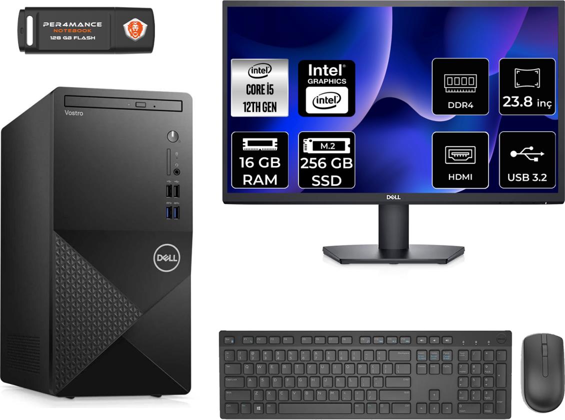 Dell Vostro 3910MT Intel Core I5 12400 16GB 256GB SSD 23.8'' Fhd Monitör Fdos N7519VDT3910 & Masaüstü Bilgisayar & Per4 USB Bellek N7519VDT3910MNT311 (N7519VDT3910MNT311)