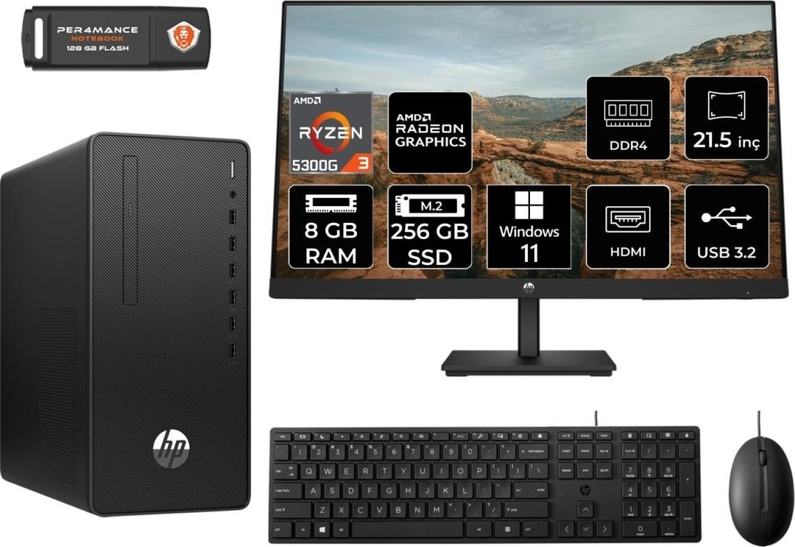 Hp 295 G9 Amd Ryzen 3 5300G 8gb 256GB SSD 21.5'' Fhd Monitör 6D391EA W11H Masaüstü Bilgisayar & Per4 USB Bellek 6D391EAMNT351 (4326797628142)