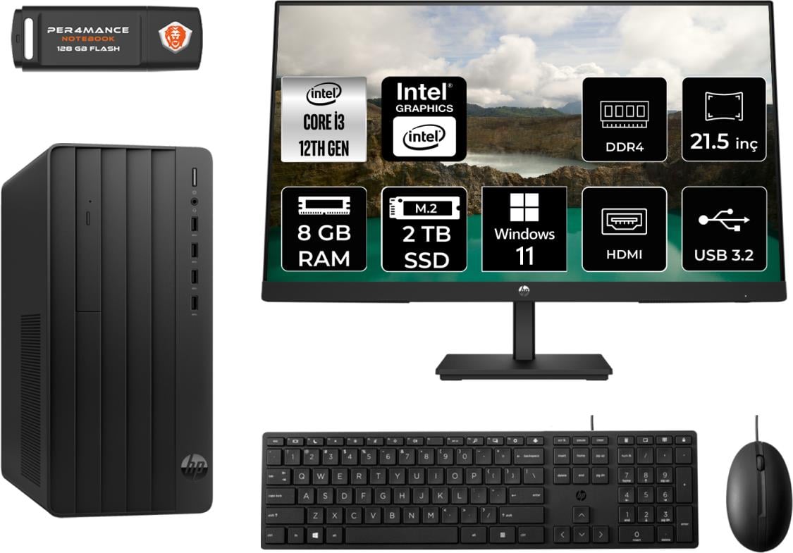 Hp Pro Tower 290 G9 Intel Core I3 12100 8gb 2tb SSD 21.5'' Fhd Monitör 6D3A1EA W11H Masaüstü Bilgisayar & Per4 USB Bellek 6D3A1EAMNT354 (9664554032691)