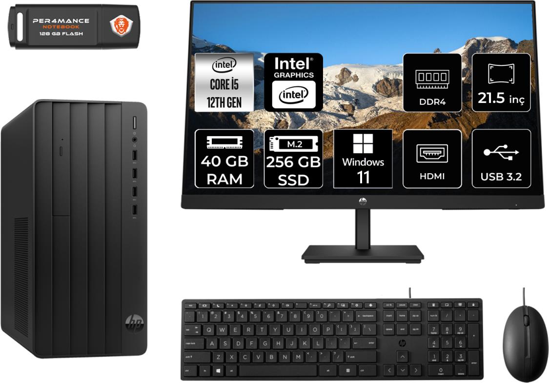 Hp Pro Tower 290 G9 Intel Core I5 12500 40GB 256GB SSD 21.5'' Fhd Monitör 6D3A5EA W11P Masaüstü Bilgisayar & Per4 USB Bellek 6D3A5EAMNT436 (1590386773396)