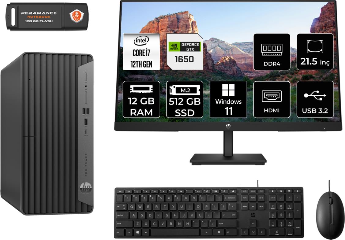 Hp Pro Tower 400 G9 Intel Core I7 12700 12GB 512GB SSD GTX1650/4GB 21.5'' Fhd Monitör W11P 6U3M9EA Masaüstü Bilgisayar & Per4 USB Bellek 6U3M9EAMNT4407 (8148622363095)