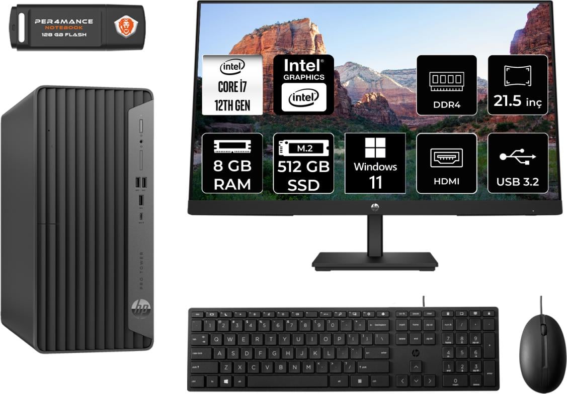 Hp Pro Tower 400 G9 Intel Core I7 12700 8gb 512GB SSD 21.5'' Fhd Monitör 6U3M9EA W11P Masaüstü Bilgisayar & Per4 USB Bellek 6U3M9EAMNT402 (4405642525819)