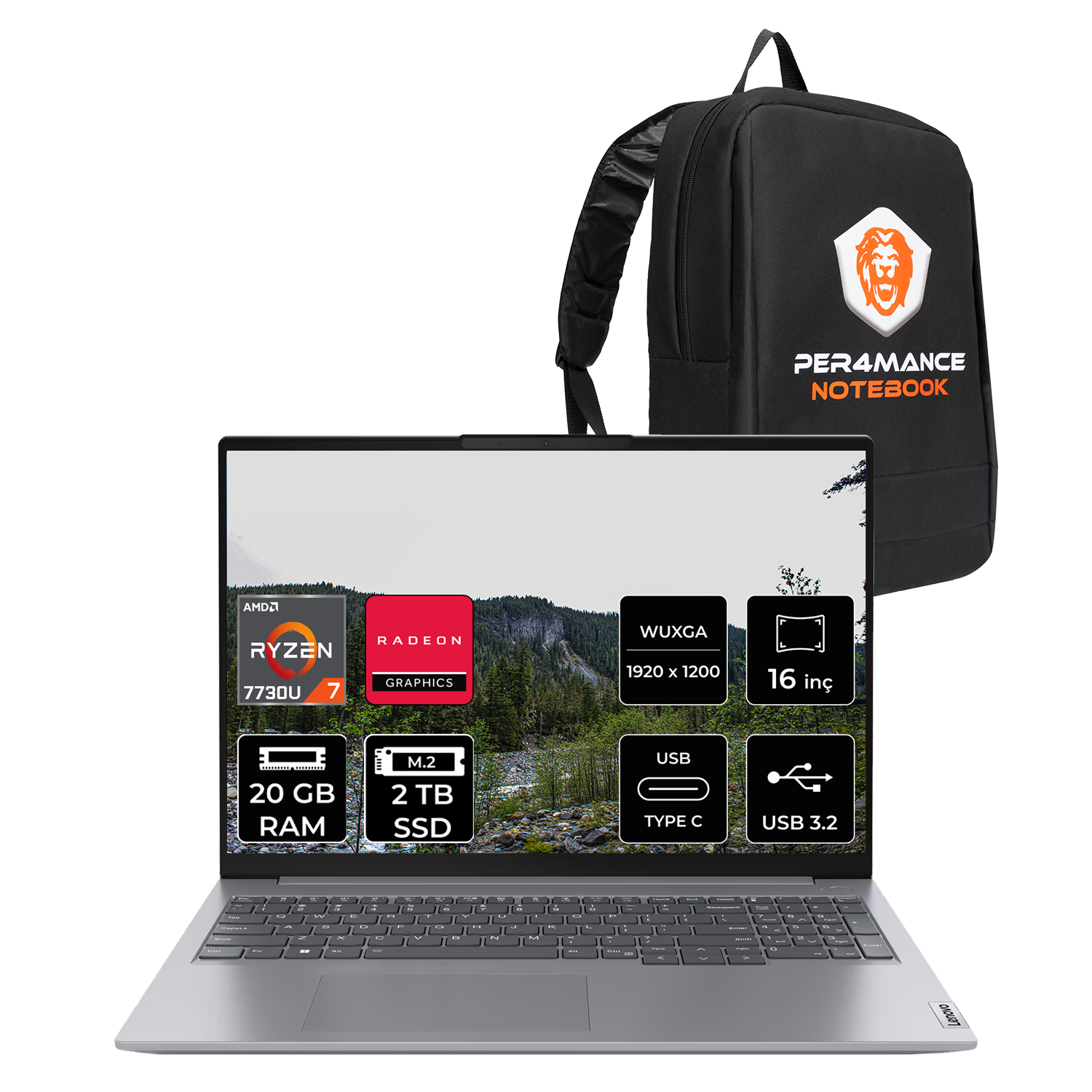 Lenovo Thinkbook 16 Gen 6 Amd Ryzen 7 7730U 20GB 2tb SSD 16" Fhd+ Fdos Taşınabilir Bilgisayar & Per4 Çanta 21KK000WTRP319