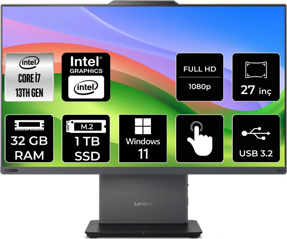 Lenovo Thinkcentre Neo 50A Intel Core I7 13620H 32GB 1tb SSD 27'' Fhd W11H Multi-Touch All In One Bilgisayar 12SA0013TRP358 (9067678536626)