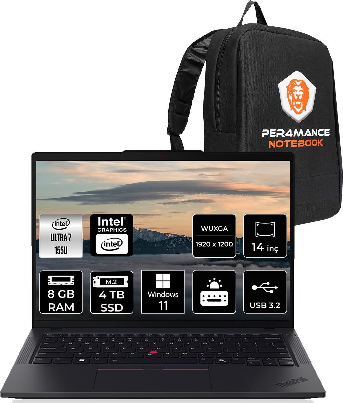 Lenovo Thinkpad T14 Gen 5 Intel Core Ultra 7 155U 16GB 256GB SSD 14'' Fhd+ W11H Taşınabilir Bilgisayar & Per4 Çanta 21ML008MTXP356 (1922766605951)
